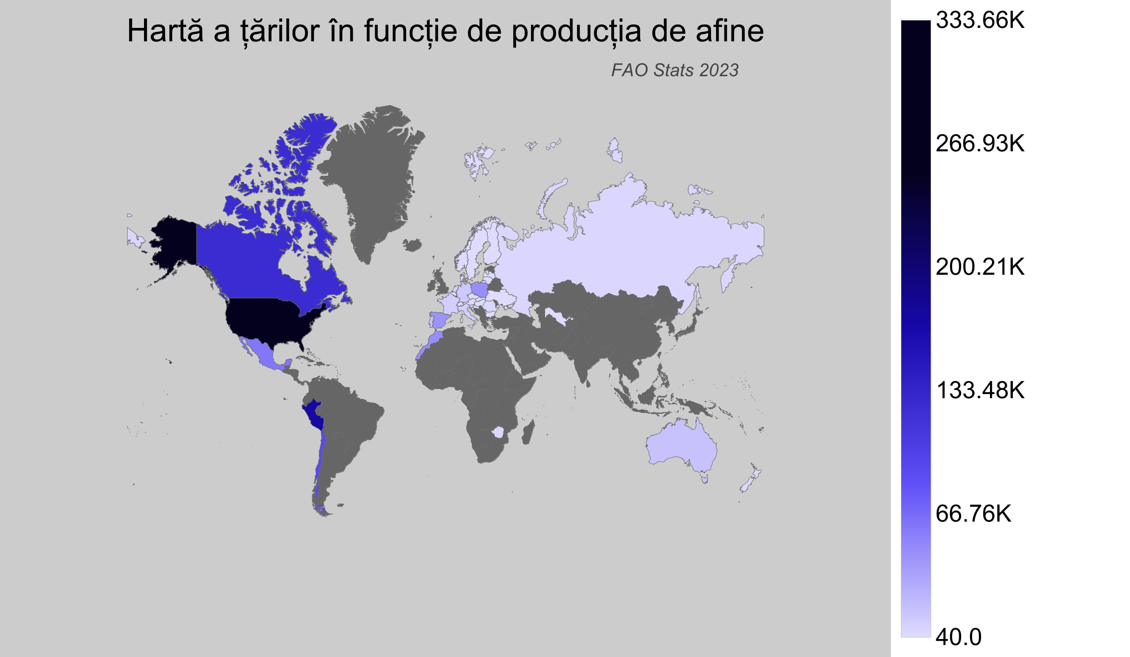- Statele Unite ale Americii sunt liderii mondiali în producția de afine, cu 334 de mii de tone produse în 2023.