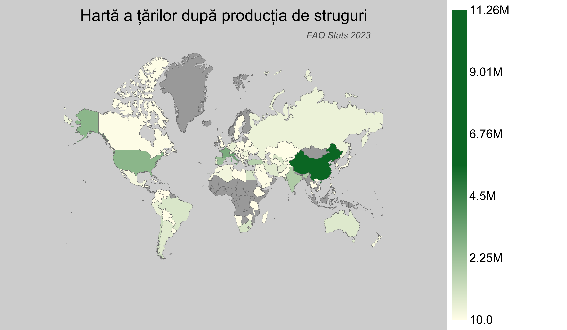 - China este lider mondial în producția de struguri, contribuind cu aproximativ 11,27 milioane de tone în 2023.