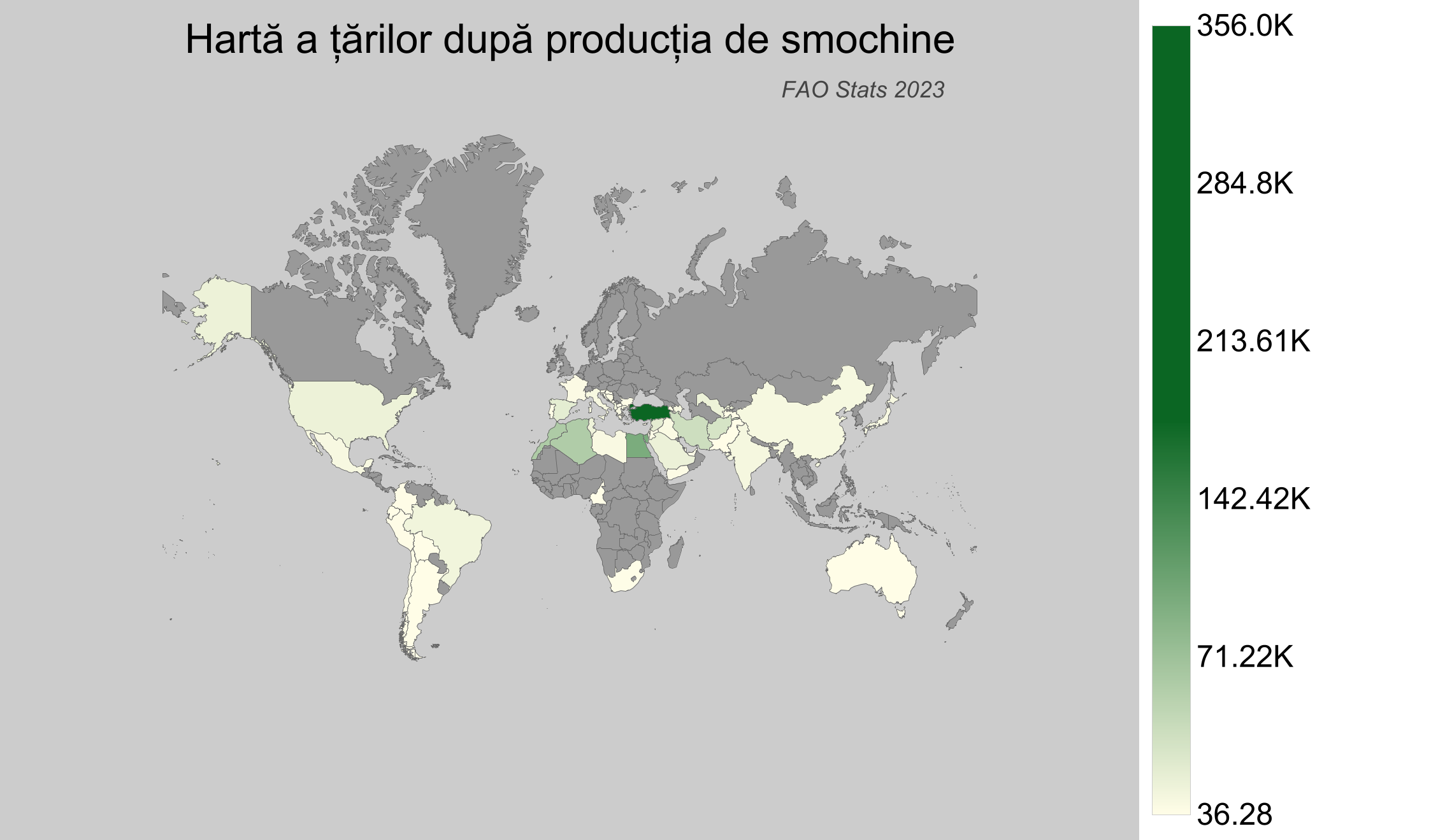 - Turcia este lider mondial în producția de smochine, cu un volum de aproximativ 356 mii de tone în 2023.